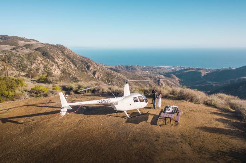 - scenic helicopter tour of Los Angeles with mountain top landing on one of our R44 helicopters;